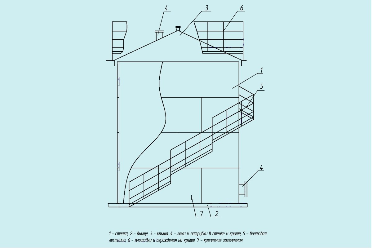 Изготовитель ориентируется на нормы ГОСТ 31385-2016 при проектировании и производстве габаритных емкостей. В качестве основного материала отбирается стальной сплав: