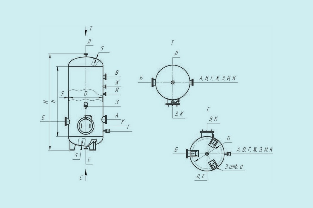 Чертеж Воздухосборник-ресивер для хранения сжатого воздуха